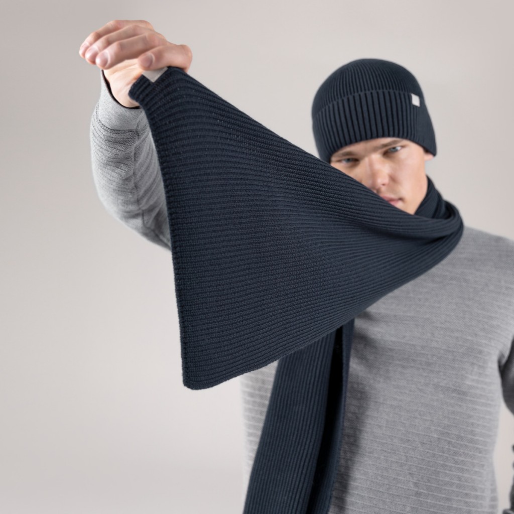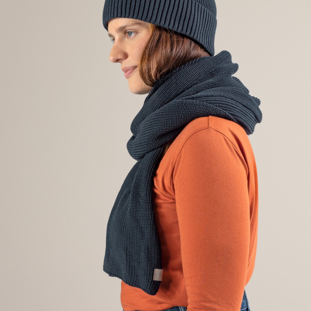 FERRARA unisex šála ze 100% biobavlny - modrá midnightUnisex pletená šála ze 100% biobavlny s žebrovaným vzorem.