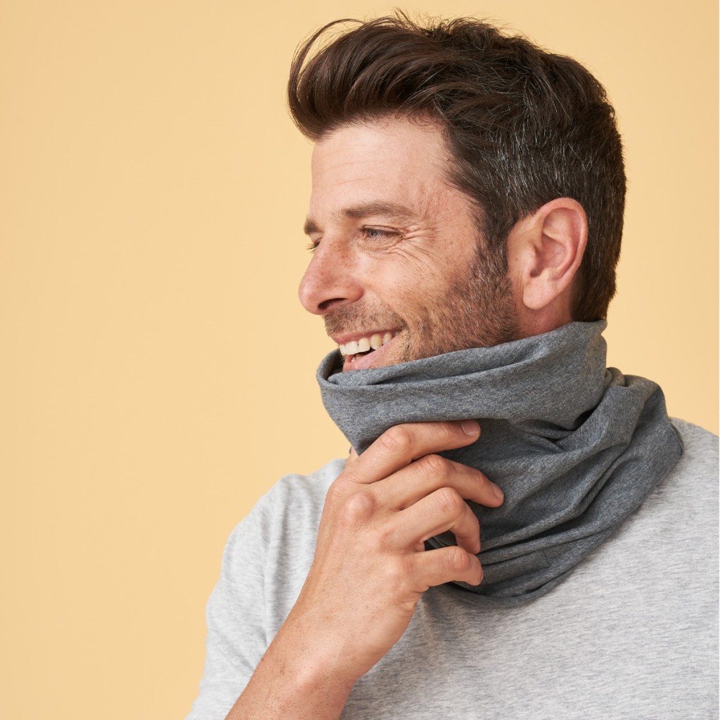 Tato multifunkční šála vyrobená z organické bavlny a elastanu je, jak název napovídá, skutečným univerzálním doplňkem pro každodenní život, volný čas i sport. Ať už ji nosíte jako klasický šátek kolem krku, jako čelenku nebo přes ústa a nos – trubková šála vás spolehlivě ochrání před větrným počasím, nepříjemným chladem a lehkou vlhkostí v dešti nebo při sportu. V každodenním životě je funkční šátek nejen mimořádně užitečným, ale i stylovým módním doplňkem.