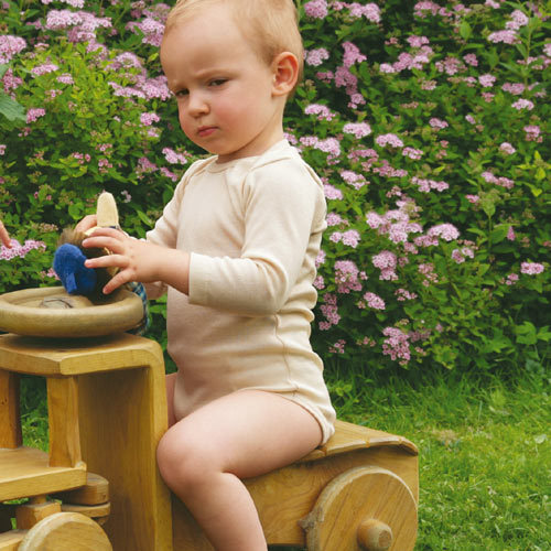Kojenecké/dětské body z bio merino vlny a hedvábí. Body má lodičkový výstřih pro snadnější oblékání