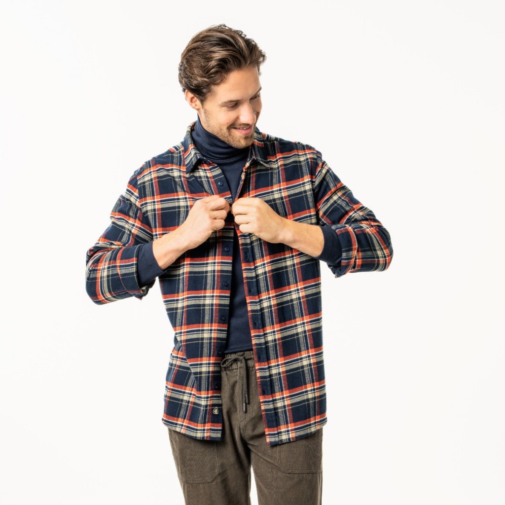 YANNES pánská flanelová košile ze 100% biobavlny - modrá fjord |