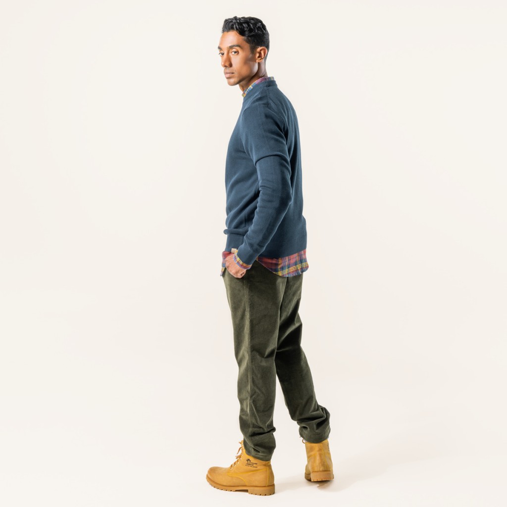 YORIN Pánský svetr z vlny a biobavlny - modrá deep sea |