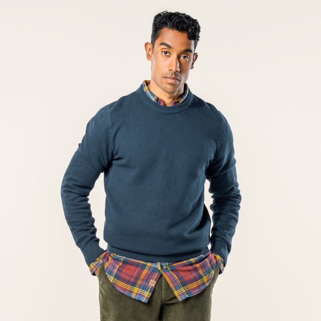 ULRYK Pánský svetr z biobavlny a vlny - modrá deep sea |