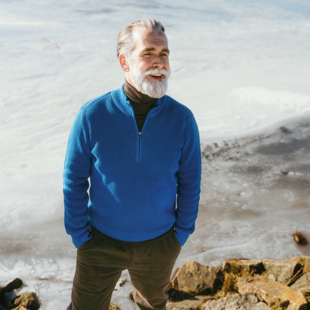 ULRYK Pánský svetr z biobavlny a vlny - modrá deep sea |