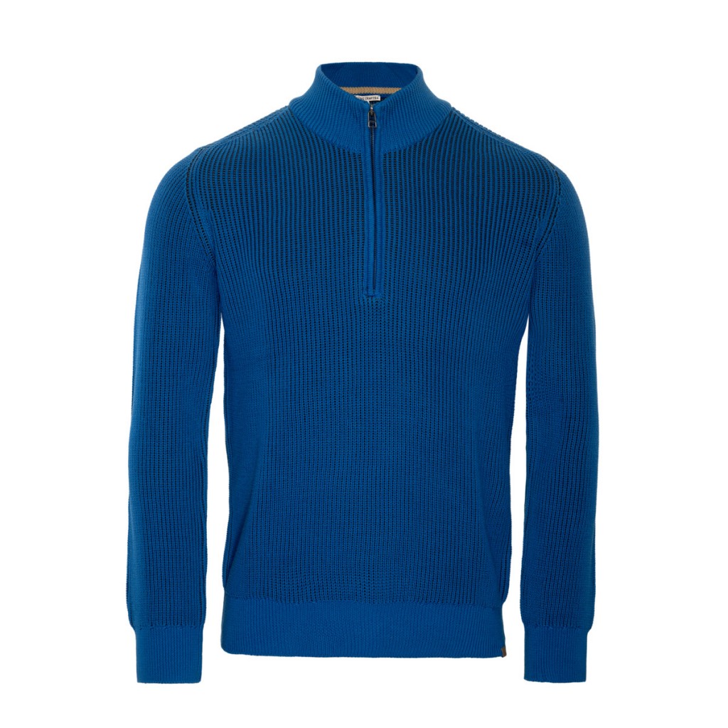 Vysoce kvalitní pletený vzor spolu s odolným kovovým zipem YKK a kontrastními žebrovanými manžetami dělají z tohoto svetru dlouhotrvajícího společníka pro různé příležitosti.