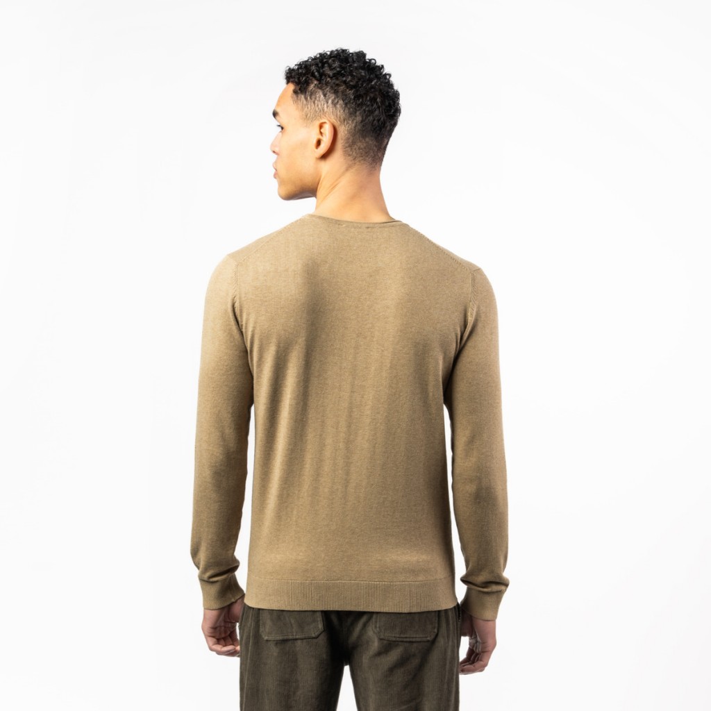 Pletený svetr ULRYK, vyrobený z 80 % organické bavlny a 20 % vlny.