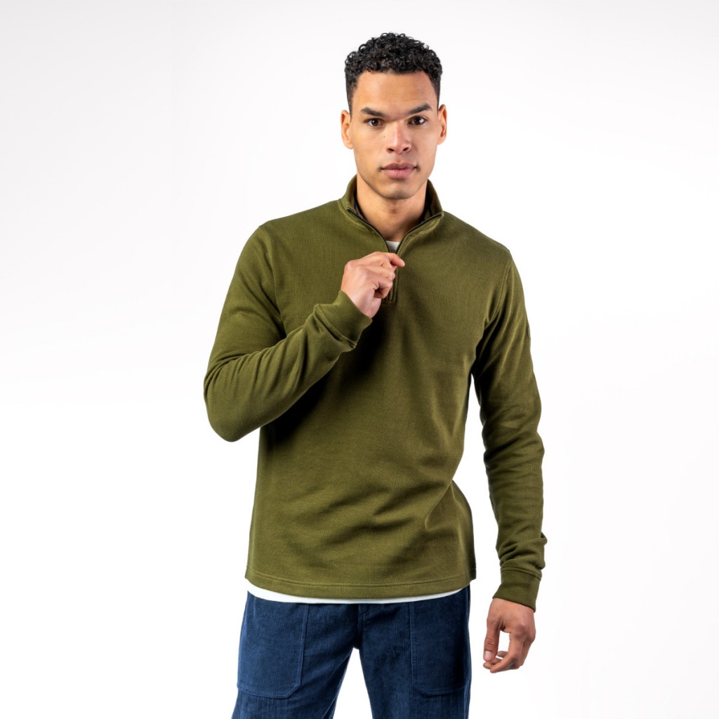 ZEDRIK Pánský svetr (troyer) ze 100% biobavlny - zelená moss| název | dostupnost | |
