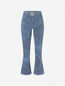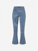 Kalhoty kombinují střih legín na stehnech se širokými nohavicemi od kolen, což vám umožní užívat si volnost pohybu a stylové pohodlí v jedinečné siluetě. Vysoký pas pohodlně padne a má praktickou kapsu na klíče v bočním švu, ideální pro drobnosti. Jemný béžovo-zlatý a žlutý sítotisk na zadní straně pasu dodává sofistikovaný nádech.