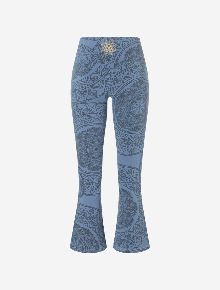 Jógové kalhoty Guna , pojmenované podle sanskrtského slova pro „vlastnost“ nebo „kvalitu“, kombinují tři ústřední vlastnosti – sattva (čistota), radžas (energie) a tamas (stabilita) – ve stylovém a harmonickém designu. Tyto tmavě modré jógové kalhoty s elegantním vzorem mandaly jsou skutečným poutačem, ideální pro vaši jógovou praxi, meditaci nebo uvolněný volný čas. Materiál, barva a vzor dokonale ladí s podprsenkou „Guna“ Hatha Yoga Bra , což vám umožní nosit harmonický a stylový jógový set.