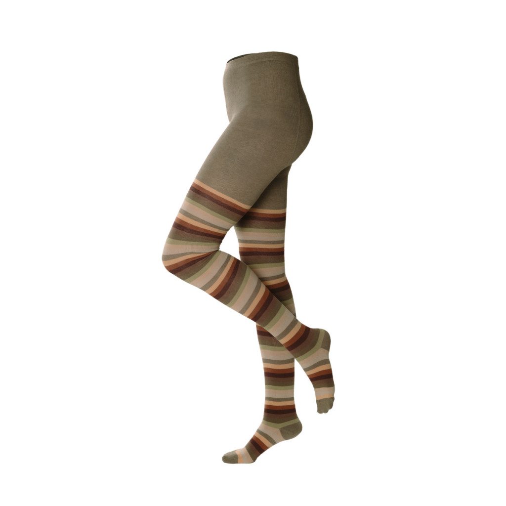 Teplé pletené punčocháče z biobavlny a recyklovaného polyamidu s příměsí elastanu pro pružnost.