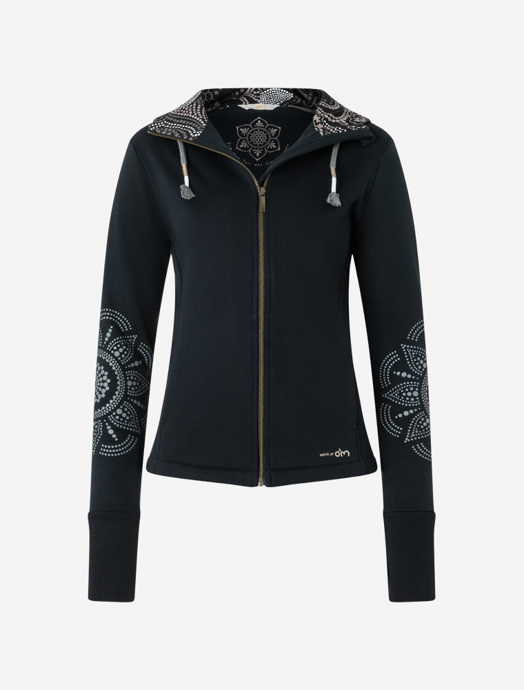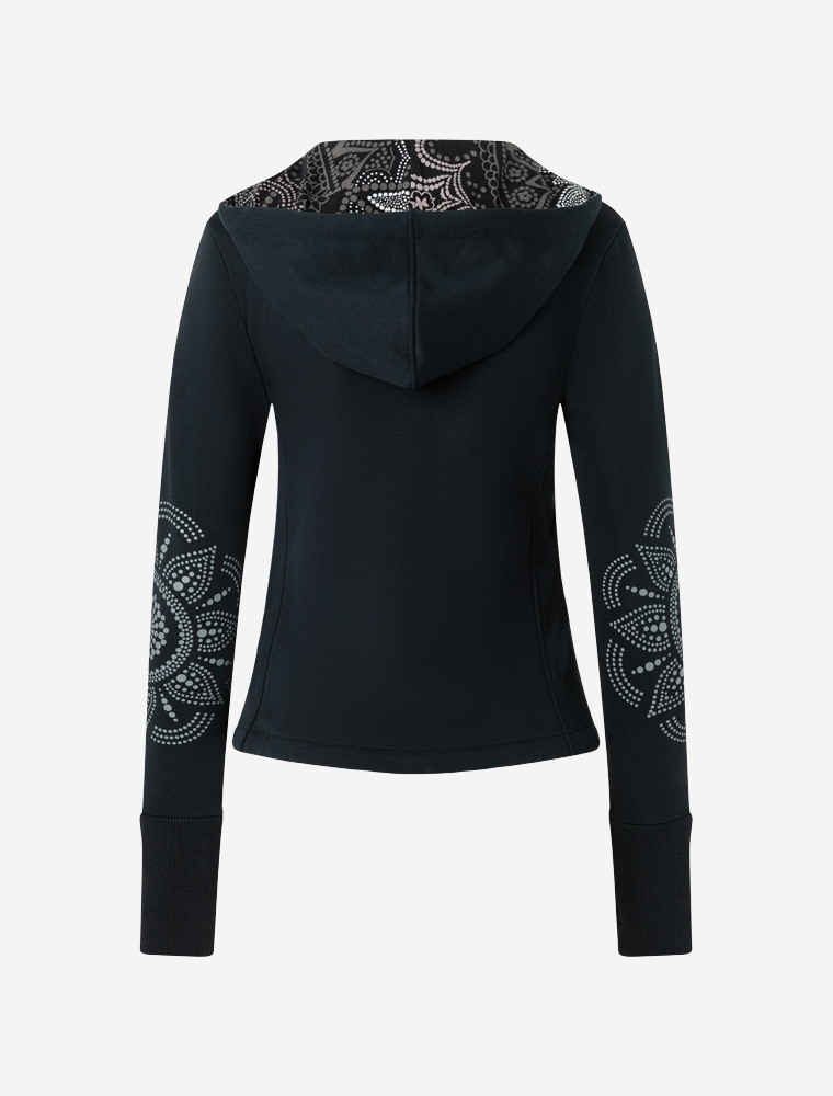 Uvnitř bundy se nachází inspirativní potisk s Květem života a afirmací „Jsem součástí vesmíru“, orámovaný klasickou květinovou mandalou Maui, který vás doprovází na cestě k všímavosti a propojení s okolím.