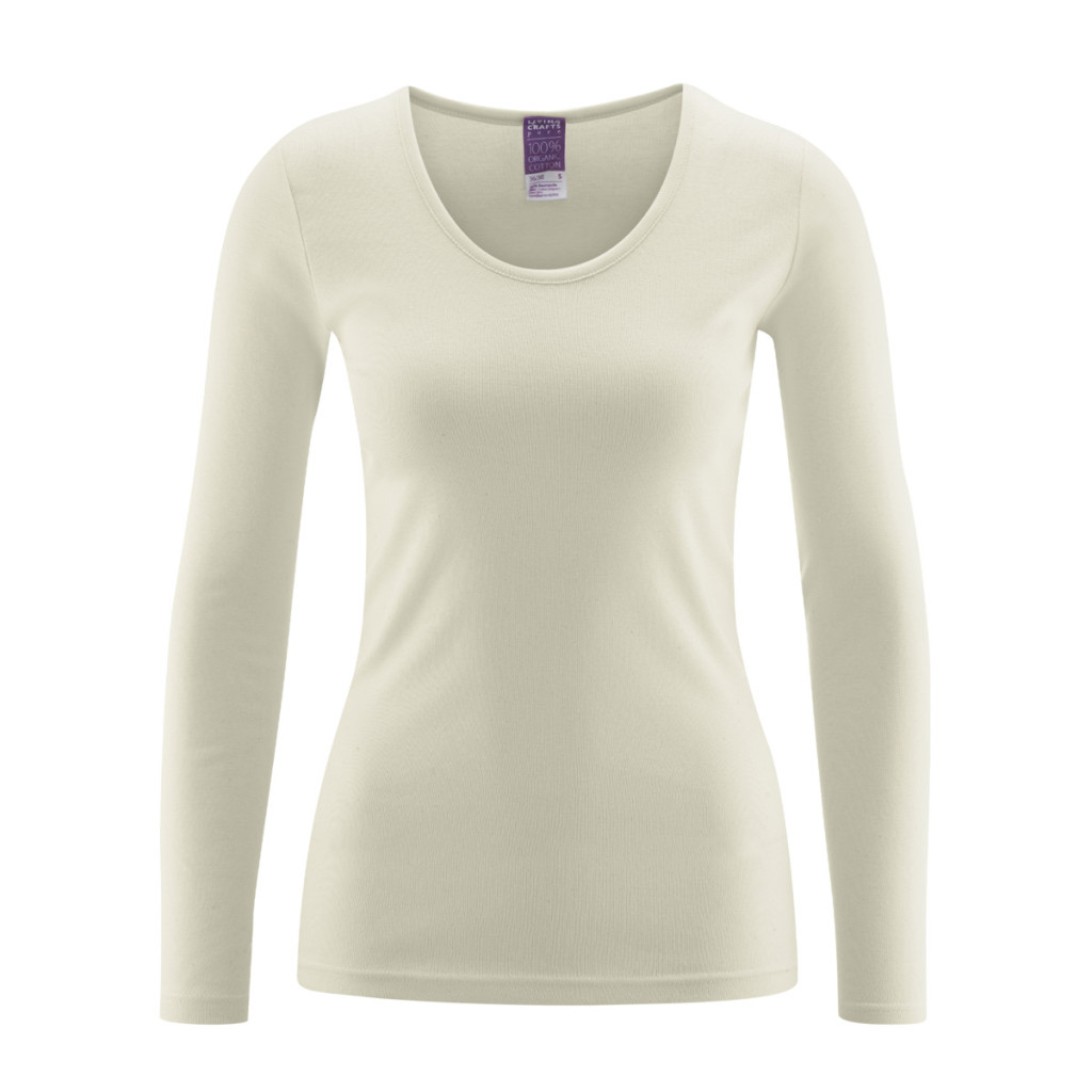 Dámský top s dlouhými rukávy a větším výstřihem ze 100% biobavlny.