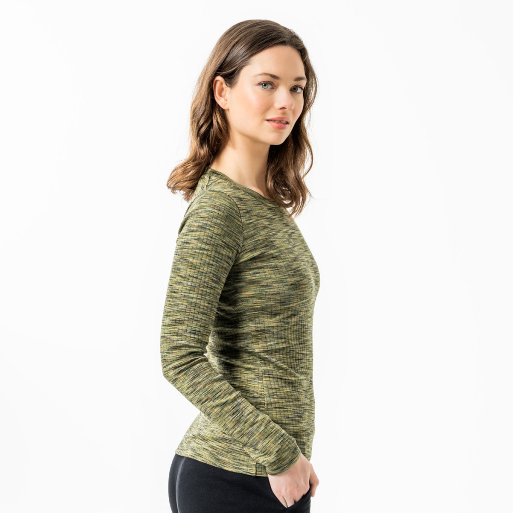 Jednoduché dámské tričko s dlouhými rukávy ze 100% biobavlny s kulatým výstřihem.